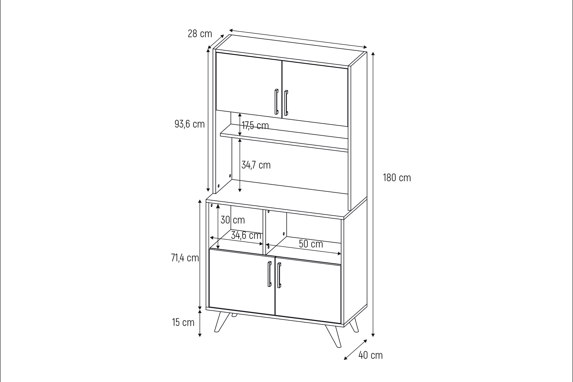 Tasarım: Alt ve üst olmak üzere toplam 4 kapaktan oluşur. İç kısmında geniş raf aralıkları bulunur, bu da onu büyük hacimli eşyalar (yorganlar, büyük tencereler veya temizlik kovaları) için uygun hale getirir.